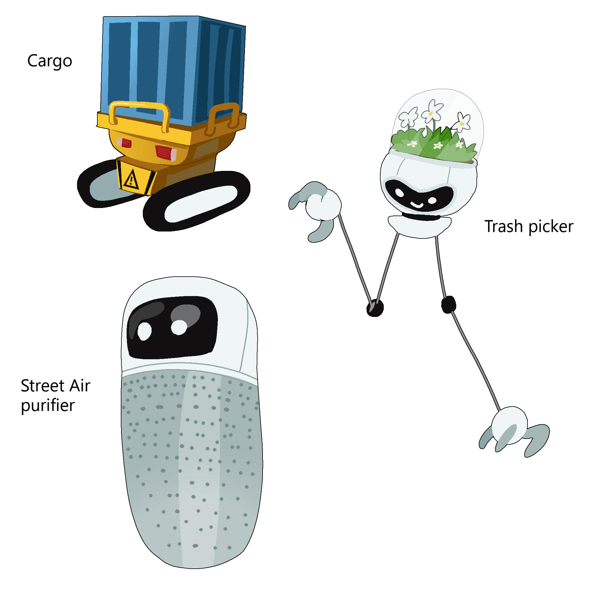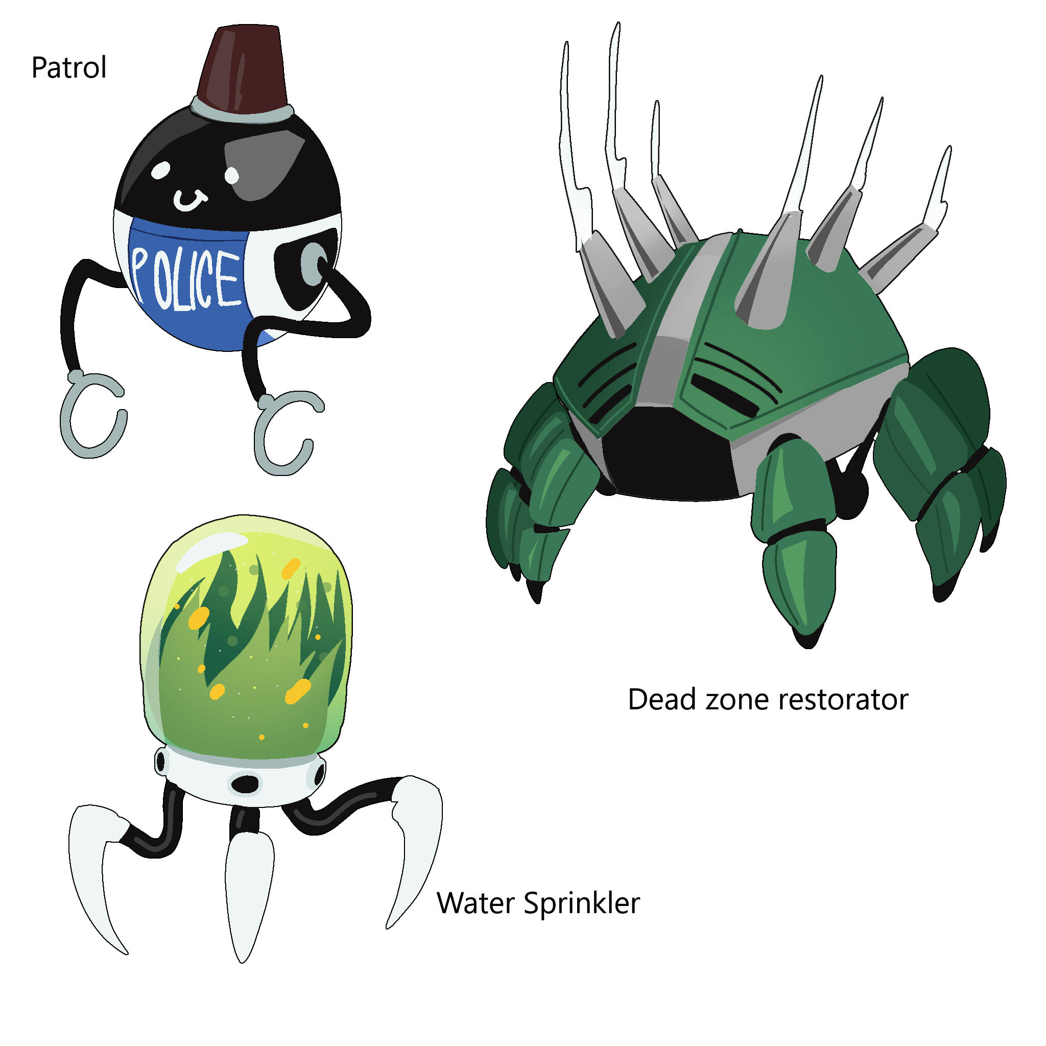 Androids that are larger or not focused for everyday consumers are apart of the restoration of earth's toxic areas and contamination it still holds. most little helpers also will have a ecosystem display in them.